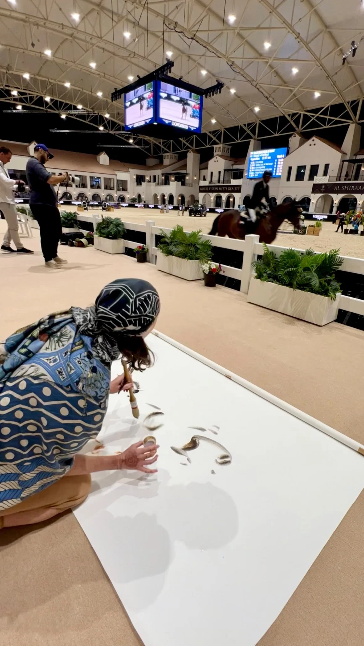 When Laura attends events, she is either engaged as an Artist in Residence, where most works are retained by who engages her, or openly painting and capturing the event, where blank commission canvases are available for purchase, with the purchaser specifying their preferred elements and colours.