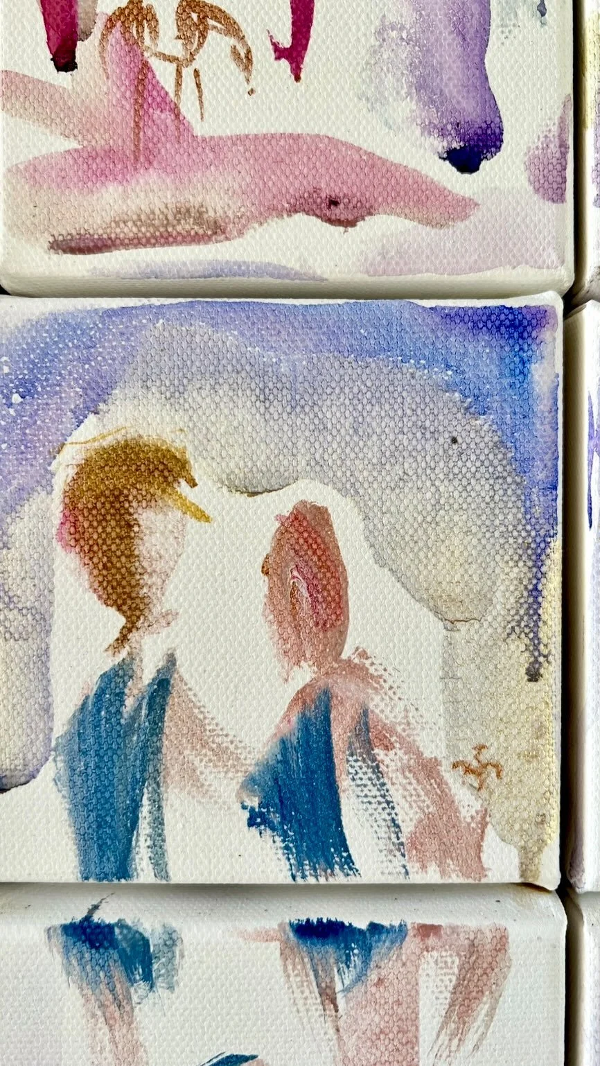 Laura is well versed in some super sneak squirrelling, when the outcome is a beautiful love gift surprise. Some love to gift a Complete Commissioned Piece, choosing photos, colours and proportions for the recipient, while others prefer to gift the Commission Experience as the gift receiver can enjoy not just the finished work, but also the entire extended experience. The Commission Experience is first given with a mini canvas as voucher, announcing the gift. Both are incredibly thoughtful and are recommended to be selected as best suited to the recipient and occasion.