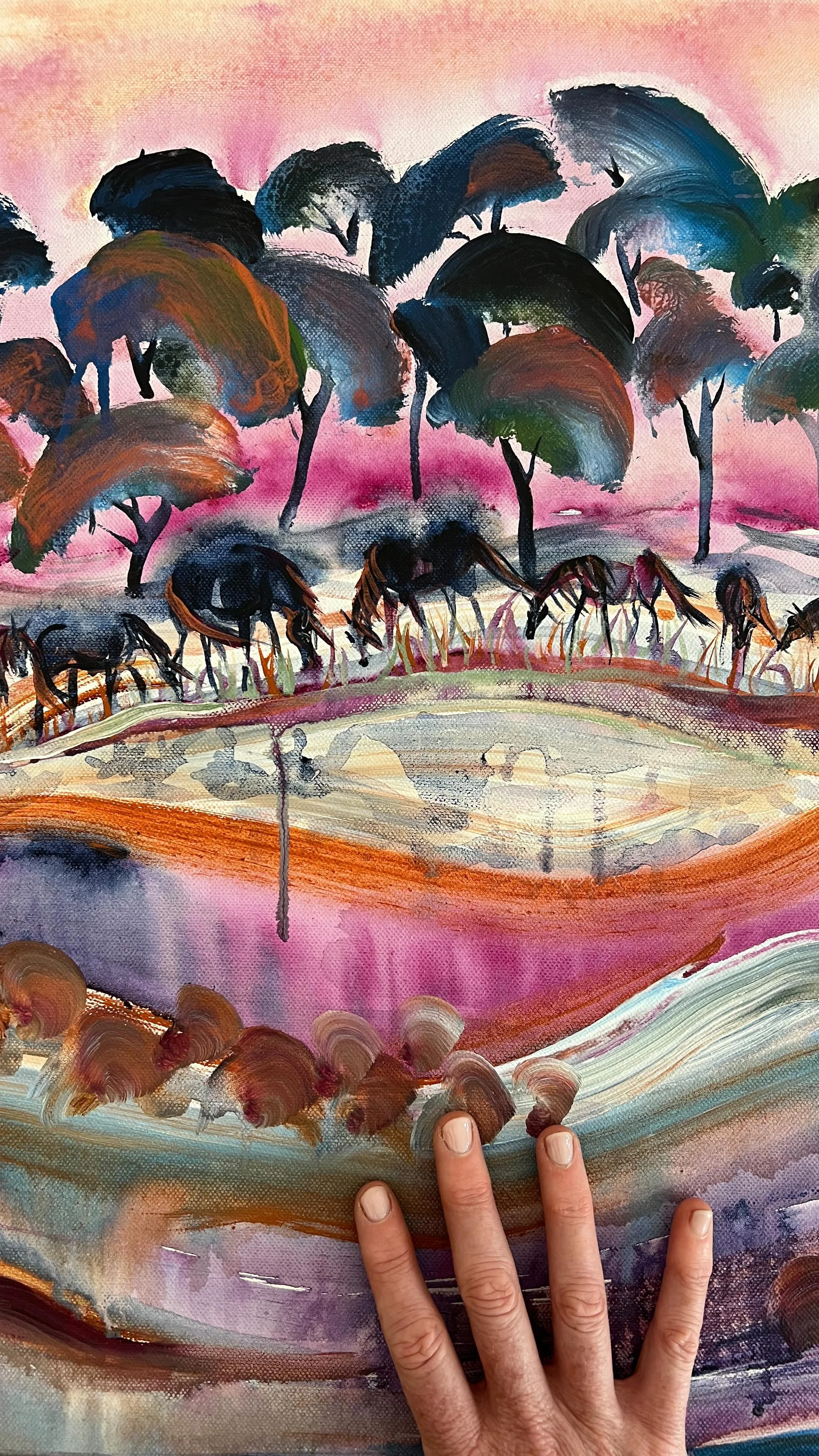 “I adore meeting more of ‘my people’ through the commission process, and working with them to choose colours and feels and compositions, just right for their homes and hearts, and translating that in colour, and creating some beauty to radiate positivity and joy through their lives.